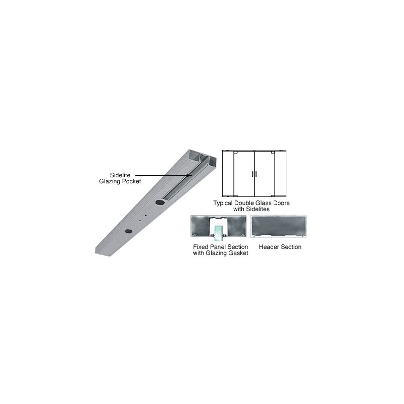 Many times installations dictate the need for a door, or pair of doors, with sidelites on either side. In the past if you used a Header on top for your Overhead Door Closers, you had to adapt a different extrusion next to your Header to secure the top of the sidelites. CRL has developed a snap-in insert with a glazing pocket that snaps in on either side of the doors. This allows you to use one continuous Header with the center fabricated for the doors, and the sides fabricated for fixed sidelites. Glass is secured in the extrusion with the provided Top Load Roll-in Gasket. To secure the bottom of the fixed sidelites, use our UC38 Series U-Channel available in five finishes: Clear Anodized, Duranodic Bronze, Polished Stainless Steel, Brushed Stainless Steel, Polished Brass. Contact CRL Technical Sales Department.