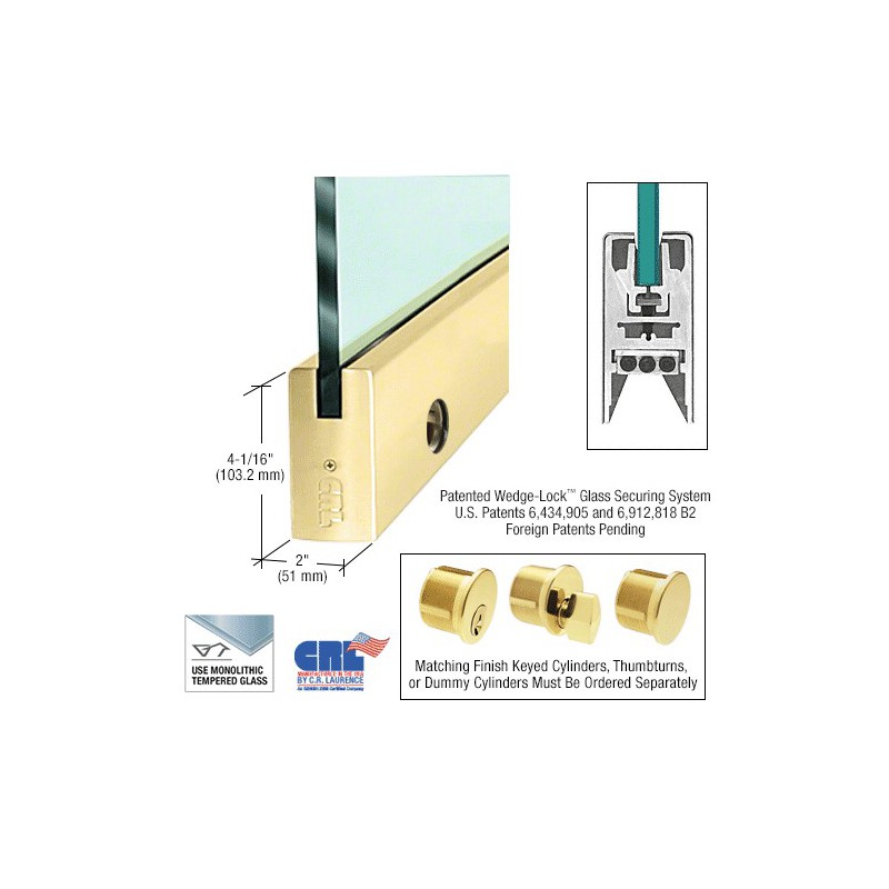 DR4SSB38CL CRL Profil de porte carr, avec serrure, 102 mm (4 po), verre de 9,5 mm (3/8 po) d'paisseur, longueur sur mesure, laiton poli
