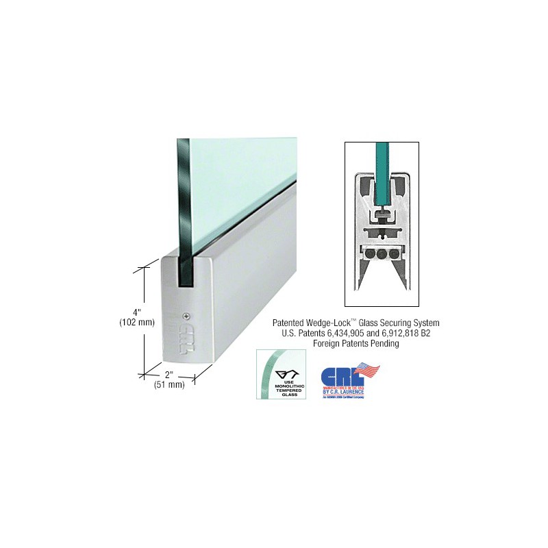 Système d'entrée en verre innovant, le dispositif de profilé de porte à système de verrouillage Wedge-Lock CRL est doté du système exclusif de verrouillage Wedge-Lock CRL (brevets américains 6,434,905 et 6,912,818 B2. Brevet canadien 2,419,706), un concept totalement nouveau pour fixer le verre dans le profilé de la porte. Fonctionne en appliquant une pression sur la partie inférieure du profilé de porte, à l'aide de deux profilés de retenue de verre en aluminium actionnés par une barre plate en acier inoxydable. Lorsque cette barre est abaissée à l'aide des boulons à six pans creux, une pression est appliquée sur les profilés de retenue du verre en aluminium. L'angle de la partie inférieure des profilés correspond à la rainure en angle du profilé de la porte. Lorsque les profilés de retenue du verre sont abaissés, le coin en biais du profilé de la porte permet de rassembler les profilés de retenue du verre. Cette action, accompagnée de notre joint de fixation spécial pour porte, permet de générer une force considérable (plus de 408,23 kg - 900 lb) au niveau de notre profilé d'angle de 228,6 mm (9 po). Soit 45,36 kg (100 lb) par 25 mm (1 po). Imaginez l'intensité de la force exercée sur nos profilés de porte de 908 mm (35-3/4 po) de long (pleine longueur) ! Le système de verrouillage Wedge-Lock pour verre vous offre plus qu'une fixation solide sur verre. Permet l'installation la plus rapide de tous les systèmes de profilés de portes du marché. Des installateurs expérimentés peuvent préparer une porte pour son installation en moins de dix minutes. Les profilés de porte à système de verrouillage Wedge-Lock CRL sont entièrement usinés et prêts à être installés grâce aux embouts déjà fixés. Après avoir installé le profilé et avant d'installer la porte, il suffit de fixer le bras de la porte ou le pivot (non compris) dans la glissière réglable d'alignement de la porte, déjà montée dans le profilé de la porte. Le système réglable d'alignement de porte vous permet de régler la porte de 3,2 mm (1/8 po) en l'éloignant ou en la rapprochant de l'huisserie, sans avoir à la retirer. Il s'agit d'un standard pour les profilés inférieurs et supérieurs. Après l'installation de la porte, il vous suffit de retirer l'embout pour régler la porte. Trois boulons à six pans creux apparaîtront. La fixation centrale est représentée par un boulon de fixation qui permet d'installer solidement la glissière réglable. Les deux boulons de fixation externes permettent de régler la glissière de 3,2 mm (1/8 po) vers l'intérieur ou l'extérieur. Le profil bas de la glissière réglable permet aux pivots à fente de se déplacer vers une position autre que la position déportée propre à la norme américaine, qui est de 69,8 mm (2-3/4 po). Cela signifie qu'il est possible de les usiner pour des ouvertures verticales présentant un faux-équerrage. Autres raisons pour choisir les profilés de porte à système de verrouillage Wedge-Lock : Les modèles sont conçus pour du verre de 10 ou 12 mm (3/8 ou 1/2 po) d'épaisseur ; contrairement aux boîtiers composés de deux moitiés, les boîtiers rigides dotés d'un seul composant ne se déplacent pas et ne se dérèglent pas. L'installation ne nécessite pas de retirer les composants internes. Les pastilles de fixation du verre sont conçues pour une longue durée de vie dans des environnements extrêmes. Remarque : Tous les profilés de porte à système de verrouillage Wedge-Lock sont dotés d'un bloc d'alignement d'huisserie intégré. Les bras et les pivots doivent cependant être commandés séparément pour répondre aux exigences de la tâche. Les profilés de porte à système de verrouillage Wedge-Lock CRL sont disponibles dans plusieurs finis standard, et peuvent être fabriqués sur mesure dans des finis et des largeurs personnalisés. Les données techniques des profilés, les gabarits et les kits de quincaillerie sont disponibles auprès du service technico-commercial CRL. Pour plus d'informations, contactez-nous par e-mail ou appelez le (800) 421-6144, poste 7700 (numéro gratuit depuis les États-Unis).