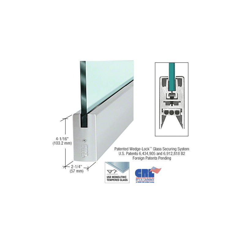 Système d'entrée en verre innovant, le dispositif de profilé de porte à système de verrouillage Wedge-Lock CRL est doté du système exclusif de verrouillage Wedge-Lock CRL (brevets américains 6,434,905 et 6,912,818 B2. Brevet canadien 2,419,706). Un concept totalement nouveau pour fixer le verre dans le profilé de la porte. Fonctionne en appliquant une pression sur la partie inférieure du profilé de porte, à l'aide de deux profilés de retenue de verre en aluminium actionnés par une barre plate en acier inoxydable. Lorsque cette barre est abaissée à l'aide des boulons à six pans creux, une pression est appliquée sur les profilés de retenue du verre en aluminium. L'angle de la partie inférieure des profilés correspond à la rainure en angle du profilé de la porte. Lorsque les profilés de retenue du verre sont abaissés, le coin en biais du profilé de la porte permet de rassembler les profilés de retenue du verre. Cette action, accompagnée de notre joint de fixation spécial pour porte, permet de générer une force considérable (plus de 408,23 kg - 900 lb) au niveau de notre profilé d'angle de 228,6 mm (9 po). Soit 45,36 kg (100 lb) par 25 mm (1 po). Imaginez l'intensité de la force exercée sur nos profilés de porte de 908 mm (35-3/4 po) de long (pleine longueur) ! Le système de verrouillage Wedge-Lock pour verre vous offre plus qu'une fixation solide sur verre. Permet l'installation la plus rapide de tous les systèmes de profilés de portes du marché. Des installateurs expérimentés peuvent préparer une porte pour son installation en moins de dix minutes. Les profilés de porte à système de verrouillage Wedge-Lock CRL sont entièrement usinés et prêts à être installés grâce aux embouts déjà fixés. Après avoir installé le profilé et avant d'installer la porte, il suffit de fixer le bras de la porte ou le pivot (non compris) dans la glissière réglable d'alignement de la porte, déjà montée dans le profilé de la porte. Le système réglable d'alignement de porte vous permet de régler la porte de 3,2 mm (1/8 po) en l'éloignant ou en la rapprochant de l'huisserie, sans avoir à la retirer. Il s'agit d'un standard pour les profilés inférieurs et supérieurs. Après l'installation de la porte, il vous suffit de retirer l'embout pour régler la porte. Trois boulons à six pans creux apparaîtront. La fixation centrale est représentée par un boulon de fixation qui permet d'installer solidement la glissière réglable. Les deux boulons de fixation externes permettent de régler la glissière de 3,2 mm (1/8 po) vers l'intérieur ou l'extérieur. Le profil bas de la glissière réglable permet aux pivots à fente de se déplacer vers une position autre que la position déportée propre à la norme américaine, qui est de 69,8 mm (2-3/4 po). Cela signifie qu'il est possible de les usiner pour des ouvertures verticales présentant un faux-équerrage. Autres raisons pour choisir les profilés de porte à système de verrouillage Wedge-Lock : Les modèles sont conçus pour du verre de 10, 12, 16 ou 19 mm (3/8, 1/2, 5/8 ou 3/4 po) d'épaisseur ; contrairement aux boîtiers composés de deux moitiés, les boîtiers rigides dotés d'un seul composant ne se déplacent pas et ne se dérèglent pas. L'installation ne nécessite pas de retirer les composants internes. Les pastilles de fixation du verre sont conçues pour une longue durée de vie dans des environnements extrêmes. Remarque : Tous les profilés de porte à système de verrouillage Wedge-Lock sont dotés d'un bloc d'alignement d'huisserie intégré. Les bras et les pivots doivent cependant être commandés séparément pour répondre aux exigences de la tâche. Les profilés de porte à système de verrouillage Wedge-Lock CRL sont disponibles dans plusieurs finis standard, et peuvent être fabriqués sur mesure dans des finis et des largeurs personnalisés. Les données techniques des profilés, les gabarits et les kits de quincaillerie sont disponibles auprès du service technico-commercial CRL. Pour plus d'informations, contactez-nous par e-mail ou appelez le (800) 421-6144, poste 7700 (numéro gratuit depuis les États-Unis).