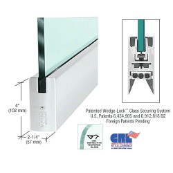 Système d'entrée en verre innovant, le dispositif de profilé de porte à système de verrouillage Wedge-Lock CRL est doté du système exclusif de verrouillage Wedge-Lock CRL (brevets américains 6,434,905 et 6,912,818 B2. Brevet canadien 2,419,706), un concept totalement nouveau pour fixer le verre dans le profilé de la porte. Fonctionne en appliquant une pression sur la partie inférieure du profilé de porte, à l'aide de deux profilés de retenue de verre en aluminium actionnés par une barre plate en acier inoxydable. Lorsque cette barre est abaissée à l'aide des boulons à six pans creux, une pression est appliquée sur les profilés de retenue du verre en aluminium. L'angle de la partie inférieure des profilés correspond à la rainure en angle du profilé de la porte. Lorsque les profilés de retenue du verre sont abaissés, le coin en biais du profilé de la porte permet de rassembler les profilés de retenue du verre. Cette action, accompagnée de notre joint de fixation spécial pour porte, permet de générer une force considérable (plus de 408,23 kg - 900 lb) au niveau de notre profilé d'angle de 228,6 mm (9 po). Soit 45,36 kg (100 lb) par 25 mm (1 po). Imaginez l'intensité de la force exercée sur nos profilés de porte de 908 mm (35-3/4 po) de long (pleine longueur) ! Le système de verrouillage Wedge-Lock pour verre vous offre plus qu'une fixation solide sur verre. Permet l'installation la plus rapide de tous les systèmes de profilés de portes du marché. Des installateurs expérimentés peuvent préparer une porte pour son installation en moins de dix minutes. Les profilés de porte à système de verrouillage Wedge-Lock CRL sont entièrement usinés et prêts à être installés grâce aux embouts déjà fixés. Après avoir installé le profilé et avant d'installer la porte, il suffit de fixer le bras de la porte ou le pivot (non compris) dans la glissière réglable d'alignement de la porte, déjà montée dans le profilé de la porte. Le système réglable d'alignement de porte vous permet de régler la porte de 3,2 mm (1/8 po) en l'éloignant ou en la rapprochant de l'huisserie, sans avoir à la retirer. Il s'agit d'un standard pour les profilés inférieurs et supérieurs. Après l'installation de la porte, il vous suffit de retirer l'embout pour régler la porte. Trois boulons à six pans creux apparaîtront. La fixation centrale est représentée par un boulon de fixation qui permet d'installer solidement la glissière réglable. Les deux boulons de fixation externes permettent de régler la glissière de 3,2 mm (1/8 po) vers l'intérieur ou l'extérieur. Le profil bas de la glissière réglable permet aux pivots à fente de se déplacer vers une position autre que la position déportée propre à la norme américaine, qui est de 69,8 mm (2-3/4 po). Cela signifie qu'il est possible de les usiner pour des ouvertures verticales présentant un faux-équerrage. Autres raisons pour choisir les profilés de porte à système de verrouillage Wedge-Lock : Les modèles sont conçus pour du verre de 10 ou 12 mm (3/8 ou 1/2 po) d'épaisseur ; contrairement aux boîtiers composés de deux moitiés, les boîtiers rigides dotés d'un seul composant ne se déplacent pas et ne se dérèglent pas. L'installation ne nécessite pas de retirer les composants internes. Les pastilles de fixation du verre sont conçues pour une longue durée de vie dans des environnements extrêmes. Remarque : Tous les profilés de porte à système de verrouillage Wedge-Lock sont dotés d'un bloc d'alignement d'huisserie intégré. Les bras et les pivots doivent cependant être commandés séparément pour répondre aux exigences de la tâche. Les profilés de porte à système de verrouillage Wedge-Lock CRL sont disponibles dans plusieurs finis standard, et peuvent être fabriqués sur mesure dans des finis et des largeurs personnalisés. Les données techniques des profilés, les gabarits et les kits de quincaillerie sont disponibles auprès du service technico-commercial CRL. Pour plus d'informations, contactez-nous par e-mail ou appelez le (800) 421-6144, poste 7700 (numéro gratuit depuis les États-Unis).