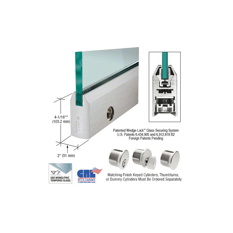 DR4TSA12SL CRL Profil de porte effil, avec serrure, 102 mm (4 po), verre de 12,7 mm (1/2 po) d'paisseur, 910 mm (35-3/4 po) de longueur, anodis satin
