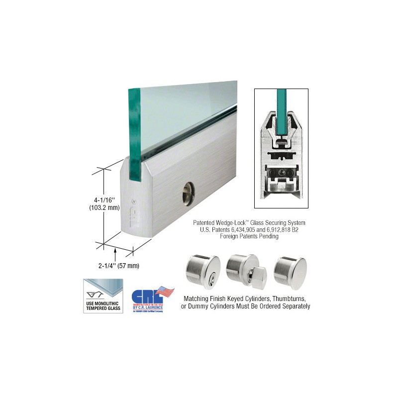 DR4TBS34SL CRL Profil de porte effil, avec serrure, 102 mm (4 po), verre de 19,1 mm (3/4 po) d'paisseur, 910 mm (35-3/4 po) de longueur, acier inoxydable bross