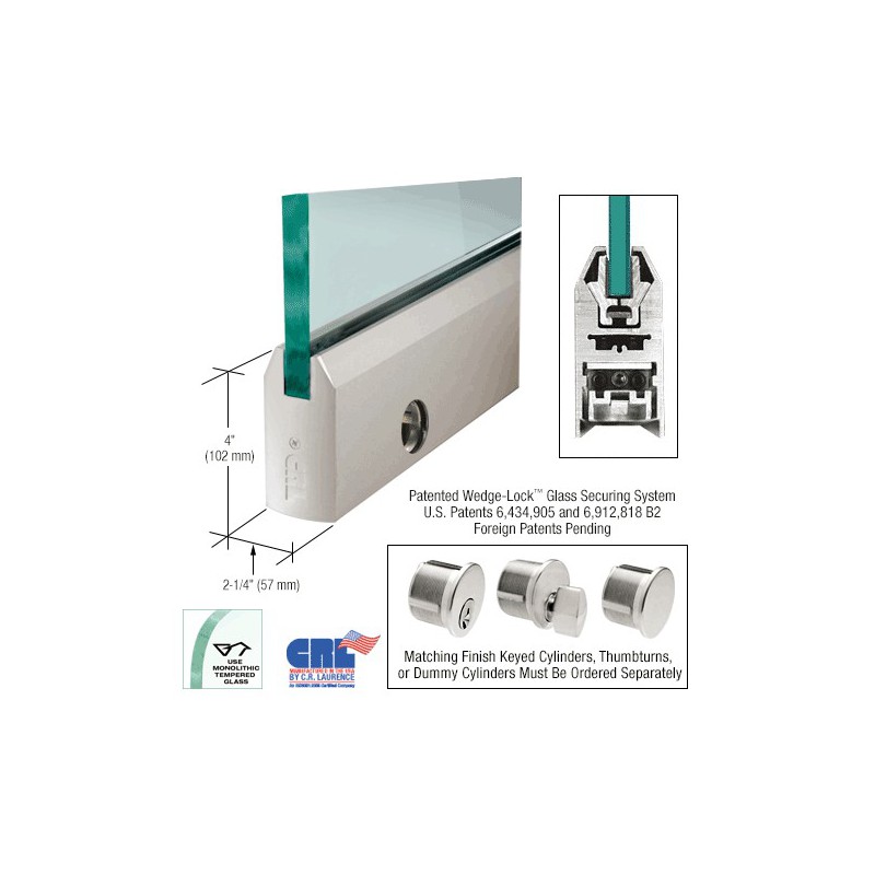 DR4TBS34SL CRL Profil de porte effil, avec serrure, 102 mm (4 po), verre de 19,1 mm (3/4 po) d'paisseur, 910 mm (35-3/4 po) de longueur, acier inoxydable bross