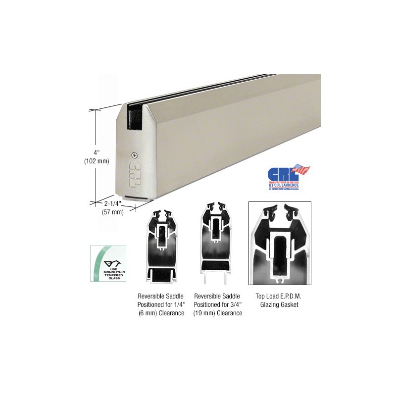 SR4TBS34SL CRL Profil de partition fixe effil, 102 mm (4 po), verre de 102 mm (4 po) d'paisseur, anodis satin