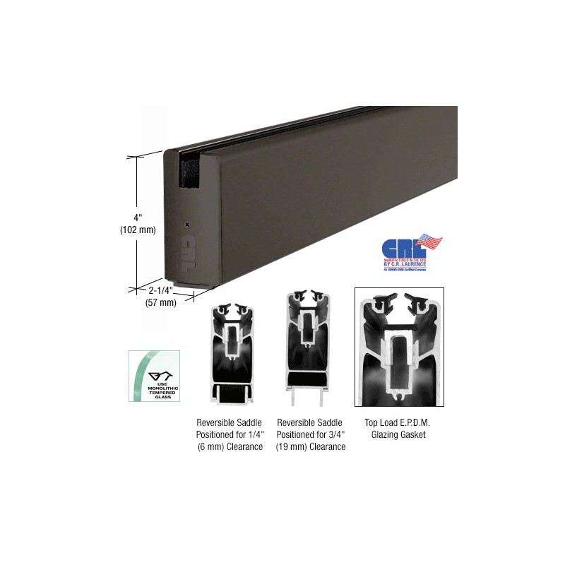 SR4SDU34240 CRL Profil de partition fixe carr, 102 mm x 6,10 m (4 x 240 po), verre de 102 mm (4 po) d'paisseur, bronze anodis noir