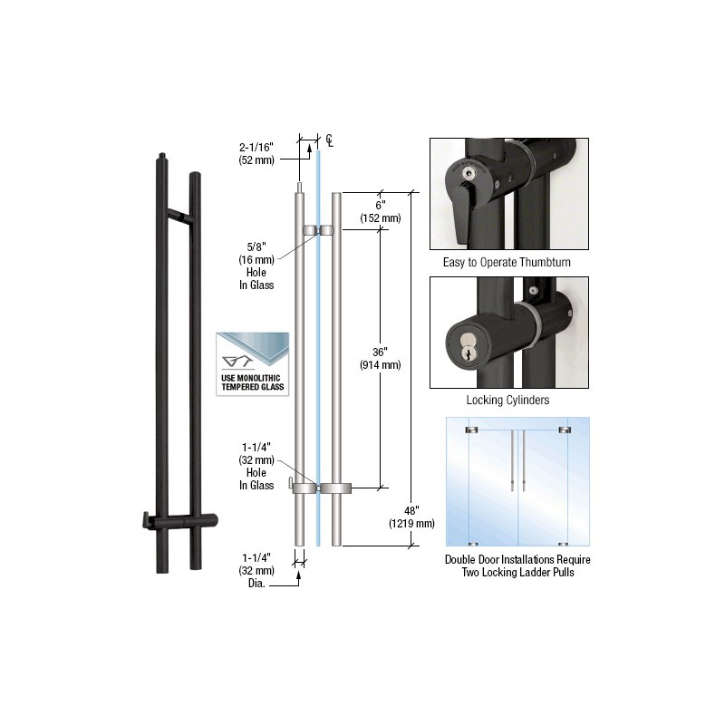 LLPUA48MBL Poigne bton de marchal serrure haute 1 219 mm (48 po) noir mat CRL