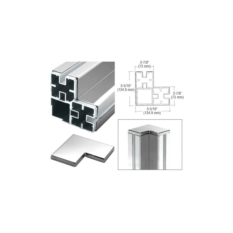CRL 90º Corner Barrier Post Kits are designed for interior and exterior applications and can be ordered in heights of up to 72" (1.8 m). Two architectural cladded finishes are available in polished or brushed 304 alloy stainless steel. Surface mount and core mount options are also available.