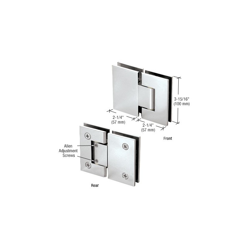 Les CRL charnières professionnelles réglables CRL de la série Cologne sont conçues pour une épaisseur de verre trempé de sécurité de 10 à 12 mm (3/8 à 1/2 po). Les deux styles, y compris platine murale et verre-verre, permettent une véritable souplesse de conception. Le concepteur/l'installateur peut laisser libre cours à son imagination pour créer des pare-douches personnalisés. Les possibilités de réglage de la très prisée série Cologne l'ont hissée à un niveau supérieur. Le réglage permettant d'obtenir l'angle souhaité (jusqu'à 90°) s'effectue après installation de la porte. Une fois la porte installée, il vous suffit de desserrer les vis hexagonales pour orienter la porte dans la position de fermeture souhaitée. Serrez les vis hexagonales dans le nouvel emplacement du dispositif de centrage automatique. La porte peut pivoter de 90° vers l'intérieur et l'extérieur (la position de l'angle est réglée en usine, mais peut être ajustée pour limiter la rotation à 90° dans un sens ou dans l'autre). Pour les portes à huisserie translucide s'ouvrant uniquement vers l'extérieur, vous pouvez régler la charnière de manière à fermer la porte de 5° à l'intérieur de la douche. Lors de sa fermeture, la porte s'encastre alors dans l'huisserie. Si vous utilisez deux charnières avec une épaisseur de verre de 10 à 12 mm (3/8 à 1/2 po), veillez à choisir une porte de 50 kgs (110 lb) et de 914 mm (36 po) de large au maximum. Si vous utilisez trois charnières avec une épaisseur de verre de 10 à 12 mm (3/8 à 1/2 po), veillez à choisir une porte de 63 kgs (140 lb) et de 914 mm (36 po) de large au maximum. Données techniques :