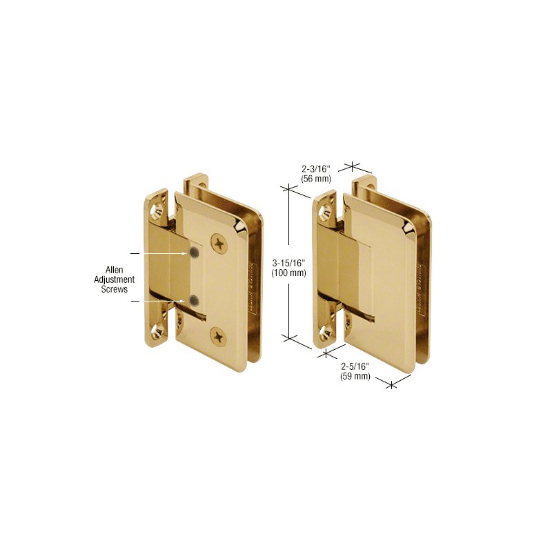 Les CRL charnières professionnelles réglables CRL de la série Cologne sont conçues pour une épaisseur de verre trempé de sécurité de 10 à 12 mm (3/8 à 1/2 po). Les deux styles, y compris platine murale et verre-verre, permettent une véritable souplesse de conception. Le concepteur/l'installateur peut alors laisser libre cours à son imagination pour créer des cabines personnalisées. Les possibilités de réglage de la très prisée série Cologne l'ont hissée à un niveau supérieur. Le réglage permettant d'obtenir l'angle souhaité (jusqu'à 90°) s'effectue après installation de la porte. Une fois la porte installée, il vous suffit de desserrer les vis hexagonales pour orienter la porte dans la position de fermeture souhaitée. Serrez les vis hexagonales dans le nouvel emplacement du dispositif de centrage automatique. La porte peut pivoter de 90° vers l'intérieur et l'extérieur (la position de l'angle est réglée en usine, mais peut être ajustée pour limiter la rotation à 90° dans un sens ou dans l'autre). Pour les portes à huisserie translucide s'ouvrant uniquement vers l'extérieur, vous pouvez régler la charnière de manière à fermer la porte de 5° à l'intérieur de la douche. Lors de sa fermeture, la porte s'encastre alors dans l'huisserie. Si vous utilisez deux charnières avec une épaisseur de verre de 10 à 12 mm (3/8 à 1/2 po), veillez à choisir une porte de 50 kgs (110 lb) et de 914 mm (36 po) de large au maximum. Si vous utilisez trois charnières avec une épaisseur de verre de 10 à 12 mm (3/8 à 1/2 po), veillez à choisir une porte de 63 kgs (140 lb) et de 914 mm (36 po) de large au maximum. Données techniques :