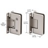 Les CRL charnières professionnelles réglables CRL de la série Cologne sont conçues pour une épaisseur de verre trempé de sécurité de 10 à 12 mm (3/8 à 1/2 po). Les deux styles, y compris platine murale et verre-verre, permettent une véritable souplesse de conception. Le concepteur/l'installateur peut alors laisser libre cours à son imagination pour créer des cabines personnalisées. Les possibilités de réglage de la très prisée série Cologne l'ont hissée à un niveau supérieur. Le réglage permettant d'obtenir l'angle souhaité (jusqu'à 90°) s'effectue après installation de la porte. Une fois la porte installée, il vous suffit de desserrer les vis hexagonales pour orienter la porte dans la position de fermeture souhaitée. Serrez les vis hexagonales dans le nouvel emplacement du dispositif de centrage automatique. La porte peut pivoter de 90° vers l'intérieur et l'extérieur (la position de l'angle est réglée en usine, mais peut être ajustée pour limiter la rotation à 90° dans un sens ou dans l'autre). Pour les portes à huisserie translucide s'ouvrant uniquement vers l'extérieur, vous pouvez régler la charnière de manière à fermer la porte de 5° à l'intérieur de la douche. Lors de sa fermeture, la porte s'encastre alors dans l'huisserie. Si vous utilisez deux charnières avec une épaisseur de verre de 10 à 12 mm (3/8 à 1/2 po), veillez à choisir une porte de 50 kgs (110 lb) et de 914 mm (36 po) de large au maximum. Si vous utilisez trois charnières avec une épaisseur de verre de 10 à 12 mm (3/8 à 1/2 po), veillez à choisir une porte de 63 kgs (140 lb) et de 914 mm (36 po) de large au maximum. Données techniques :