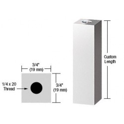 Cette base d'entretoise carrée CRL sur mesure est assortie à votre embout carré sur mesure et est désormais disponible auprès du service production de C.R. Laurence Co. Suite aux demandes de nos clients concernant des longueurs et des finis spécifiques d'entretoises, CRL propose désormais des bases d'entretoise et des embouts sur mesure ronds de 12, 25, 44 et 50 mm (1/2, 1, 1-3/4 et 2 po), et ronds et carrés de 19 et 31 mm (3/4 et 1-1/4 po). Finis disponibles : Acier inoxydable poli, acier inoxydable brossé, chrome satiné, laiton poli, laiton brossé et coloris de revêtement par pulvérisation standard. Si sa longueur est inférieure ou égale à 50,8 mm (2 po), la base devra être percée et taraudée de part et d'autre. Si la base mesure plus de 50,8 mm (2 po), elle devra être percée et taraudée à une profondeur de 25,4 mm (1 po) à chaque extrémité. Les tailles de filetage pour les embouts et embases sur mesure sont : Pour un diamètre inférieur à 19 mm (3/4 po), percez et insérez un filetage 10-24. Pour un diamètre ou un carré de 19 à 31,8 mm (3/4 à 1-1/4 po), taraudez un orifice de 6 mm (1/4 po), filetage 20. Pour un diamètre ou un carré compris entre 31,8 et 38,1 mm (1-1/4 et 1-1/2 po), taraudez un orifice de 8 mm (5/16 po), filetage 18. Pour un diamètre de 38,1 mm (1-1/2 po) ou supérieur, taraudez un orifice de 9,5 mm (3/8 po), filetage 16. Les systèmes d'entretoises CRL sont complétés par une gamme complète d'accessoires de montage que vous pouvez commander selon la quantité nécessaire à votre projet. Pour obtenir des conseils sur les techniques d'installation ou la conception de votre projet impliquant l'utilisation d'entretoises CRL, veuillez contacter le service technico-commercial CRL au (800) 421-6144, poste 7700, ou par e-mail.