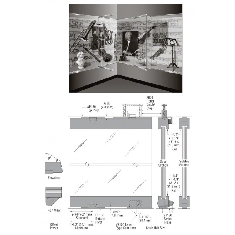 CRL-Blumcraft 1301 Series Display Case Doors and Sidelites provide the most clear viewable area of any heavy glass display case system available today. Top and bottom rails measure only 1-1/4" x 1-1/4" (32 x 32 mm), and are prepped for pivots and locks. We offer two systems, the 1301-SM Series With Surface Mounted Pivots, and the 1301-CM Series with Continuous Mounting Bars that house the pivots, locks, and catches. Both are available with center or offset pivots.