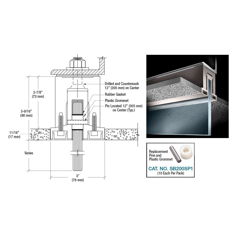 SB200SP1 CRL-Blumcraft SB200 Smoke Baffle Base Shoe Replacement Hardware - 10 Pack