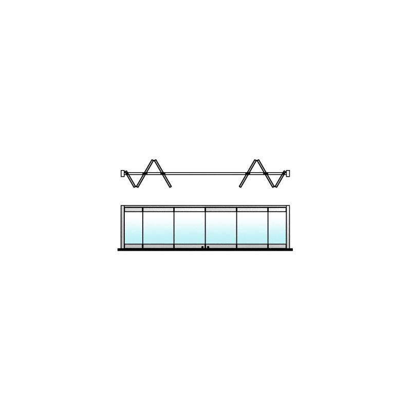 Le système de porte à demi-vantaux pliants et caisson d'entraînement CRL est disponible en quatre configurations, avec trois panneaux maximum de chaque côté de l'ouverture. Les panneaux d'extrémité agissent comme des portes à pivotement central ordinaires et se fixent au premier panneau suspendu à l'aide des embouts pivotants spéciaux. Les panneaux suspendus sont raccordés de la même manière et suspendus à un seul kit de roulement réf. 0TCA sur un point central de la largeur du panneau. Notre série de profils de coulisse réf. 0TBR fournie avec chaque commande est vivement recommandée pour empêcher la résistance des panneaux en fonctionnement. Le poids maximum d'un panneau ne doit pas dépasser 77 kg (170 lb). La largeur maximum de panneau est de 104,14 m (41 po). La largeur minimum de panneau est de 381 mm (15 po). REMARQUE : Disponible uniquement sur commande. La plupart des commandes peuvent être usinées sous cinq jours ouvrés à notre usine de Los Angeles, Californie. Veuillez contacter le service technico-commercial CRL au (800) 421-6144 depuis les États-Unis, au (877) 421-6144 depuis le Canada ou au (323) 588-1281 depuis l'international et demander le poste 7700.