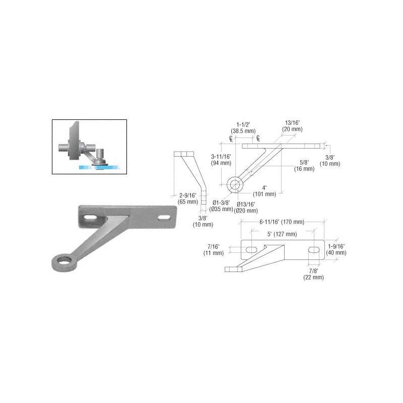Cette fixation pour panneau en verre à bras simple CRL est conçue pour fixer un panneau en verre simple à un mur ou un raidisseur structurel en verre. Vendu avec deux goujons en acier inoxydable M10 x 1,25 de pas x 59 mm (2-5/16 po) de long et deux écrous borgnes correspondants avec rondelles. Pour des fixations assorties, utilisez les fixations réf. FMH1LHBS, FMH1LHPS, FMH2VBS, FMH2VPS, FMH4BS ou FMH4PS.