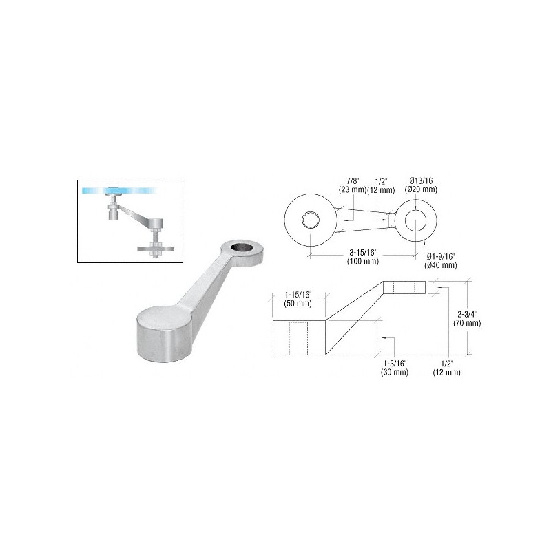 Ce connecteur à bras simple CRL est conçu pour fixer un panneau en verre simple à un poteau structurel d'extrémité. Vendu avec un goujon en acier inoxydable de 99,5 mm (3-7/8 po), filetage 16, et trois écrous correspondants avec rondelles. Pour des fixations assorties, utilisez la fixation réf. PMH2BS ou PMH2PS.