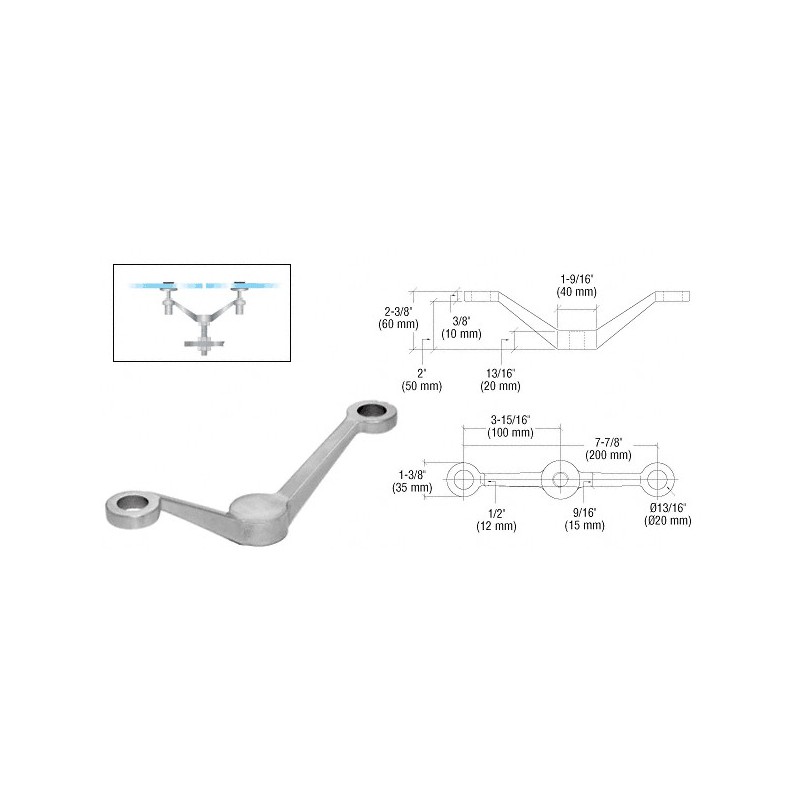 Ce connecteur à 2 bras CRL est conçu pour fixer deux panneaux en verre en tandem à un poteau structurel central. Vendu avec un goujon fileté en acier inoxydable M16 de 99,5 mm (3-7/8 po), filetage 2, et trois écrous correspondants avec rondelles. Pour des fixations assorties, utilisez la fixation réf. PMR1BS ou PMR1PS.
