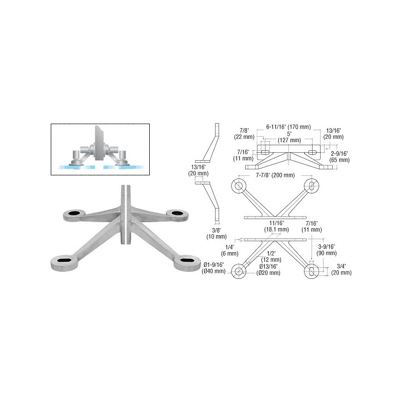 FMR4BS CRL Connecteur en V 4 bras pour cadre, fixation sur raidisseur, srie moyenne, acier inoxydable bross