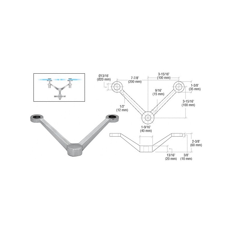 PMR2VBS CRL Connecteur en V 2 bras, fixation sur colonne, srie moyenne, acier inoxydable bross