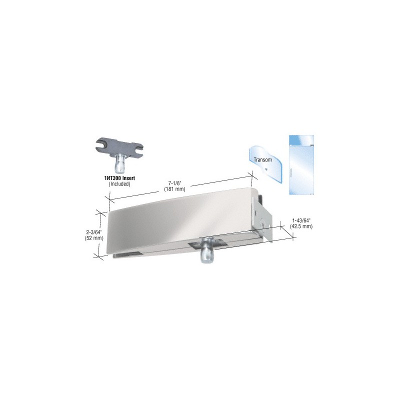 Cette plaque de suspension d'imposte incurvée CRL à fixation murale permet de supporter une imposte au niveau de l'huisserie latérale. Elle est livrée avec un tampon supérieur 1NT303 dans le cadre d'une fixation sur porte. Retirez le tampon du côté sans charnière pour créer une porte à deux vantaux va-et-vient. Utiliser un tampon de butée de porte pour plaque de suspension d'imposte 1NT306 afin de créer une porte à sens unique. Façonnage du verre : un orifice de 19 mm (3/4 po) de diamètre et une encoche d'angle