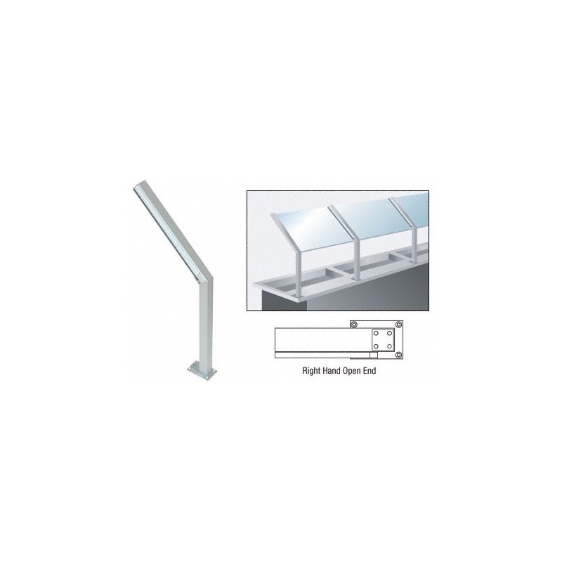 Le poteau de pare-haleine CRL D999 est conçu pour une installation côté client du comptoir devant le matériel de restauration. Le verre de la partie inclinée du poteau fait office de pare-haleine tandis que la partie verticale ouverte située en-dessous permet d'accéder à la nourriture. Des systèmes de plus petites dimensions sont également disponibles. Ces produits sont disponibles dans plusieurs finis : anodisé satiné, fini or anodisé, bronze duranodic, anodisé brillant et fini or anodisé brillant. Veuillez contacter le service technico-commercial CRL pour de plus amples informations.