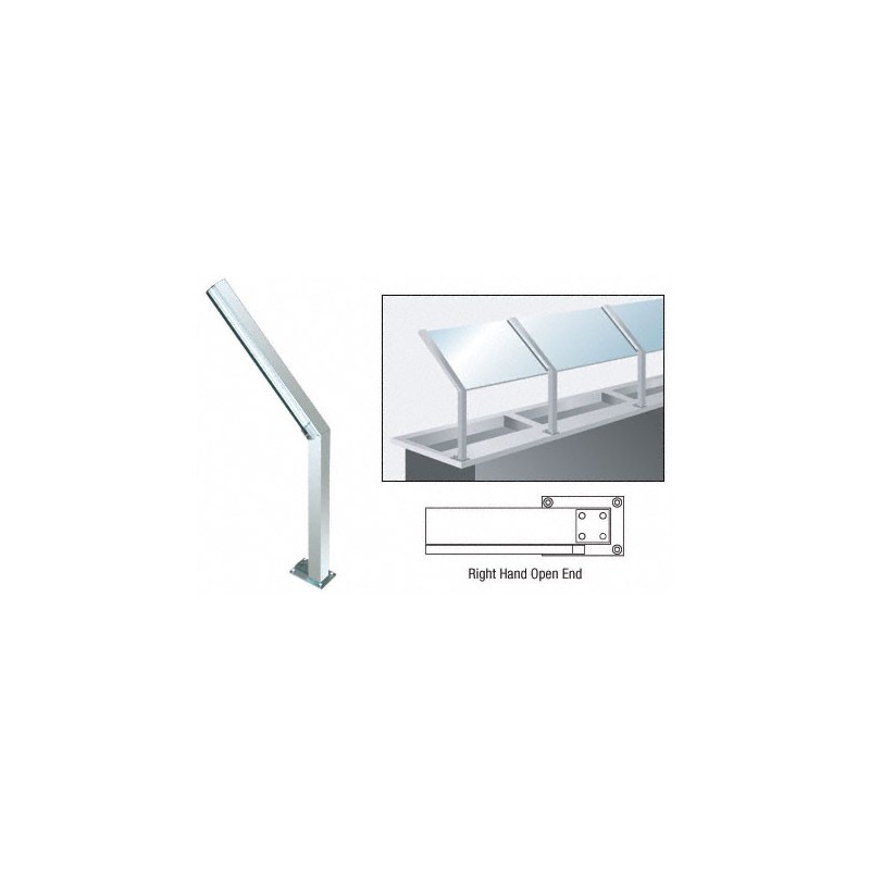 Le poteau de pare-haleine CRL D999 est conçu pour une installation côté client du comptoir devant le matériel de restauration. Le verre de la partie inclinée du poteau fait office de pare-haleine tandis que la partie verticale ouverte située en-dessous permet d'accéder à la nourriture. Des systèmes de plus petites dimensions sont également disponibles. Ces produits sont disponibles dans plusieurs finis : anodisé satiné, fini or anodisé, bronze duranodic, anodisé brillant et fini or anodisé brillant. Veuillez contacter le service technico-commercial CRL pour de plus amples informations.