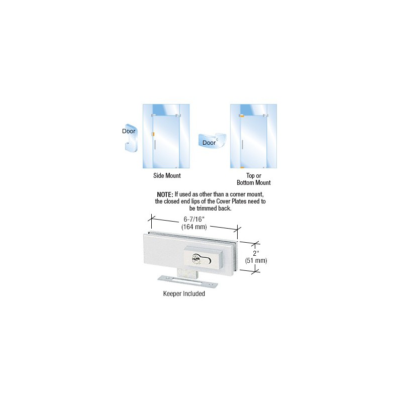 La Serrure de porte en verre de style européen CRL peut être montée indifféremment sur la partie inférieure ou supérieure de la porte. Elle peut également être utilisée sur le bord vertical de la porte et fixée sur une huisserie grâce à la gâche fournie. La Serrure de porte en verre peut en outre être fixée sur un panneau en verre ou une porte à l'aide de la gâche montée sur partition fixe EUR206. Une gâche inférieure facile à nettoyer EUR208 est disponible en option pour la plupart des installations. Façonnage du verre nécessaire :