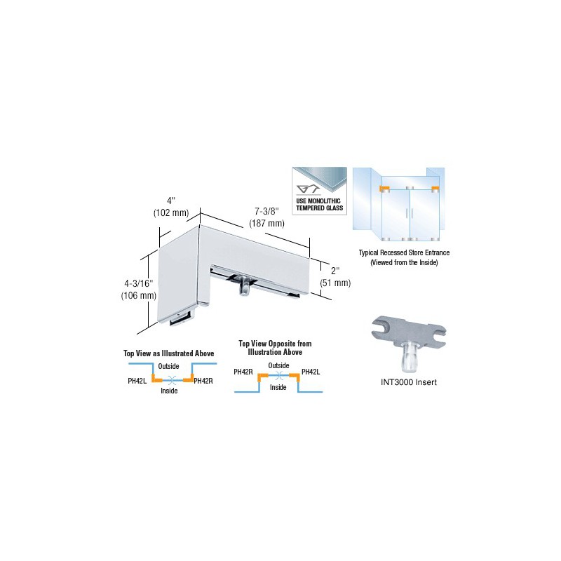 PH42LPS CRL Polished Stainless 90 Degree Left Hand Sidelite Patch with 1NT300 Insert