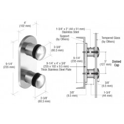 RS0B25PS CRL Entretoise de fixation pour garde-corps en verre "dome", avec plaque de montage, acier inoxydable poli