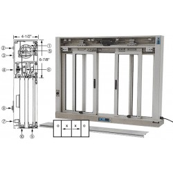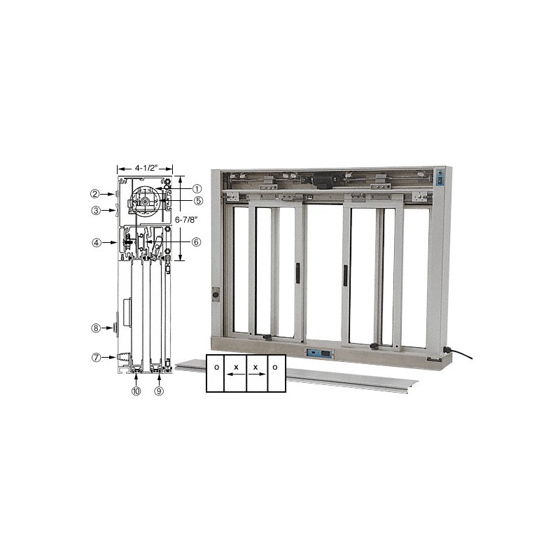 EDW3403P CRL Deluxe, Guichet transactionnel coulissant avec rebord en acier inoxydable, format OXXO, entirement automatis et lectrique, sur mesure, peinture en poudre (spcifier)