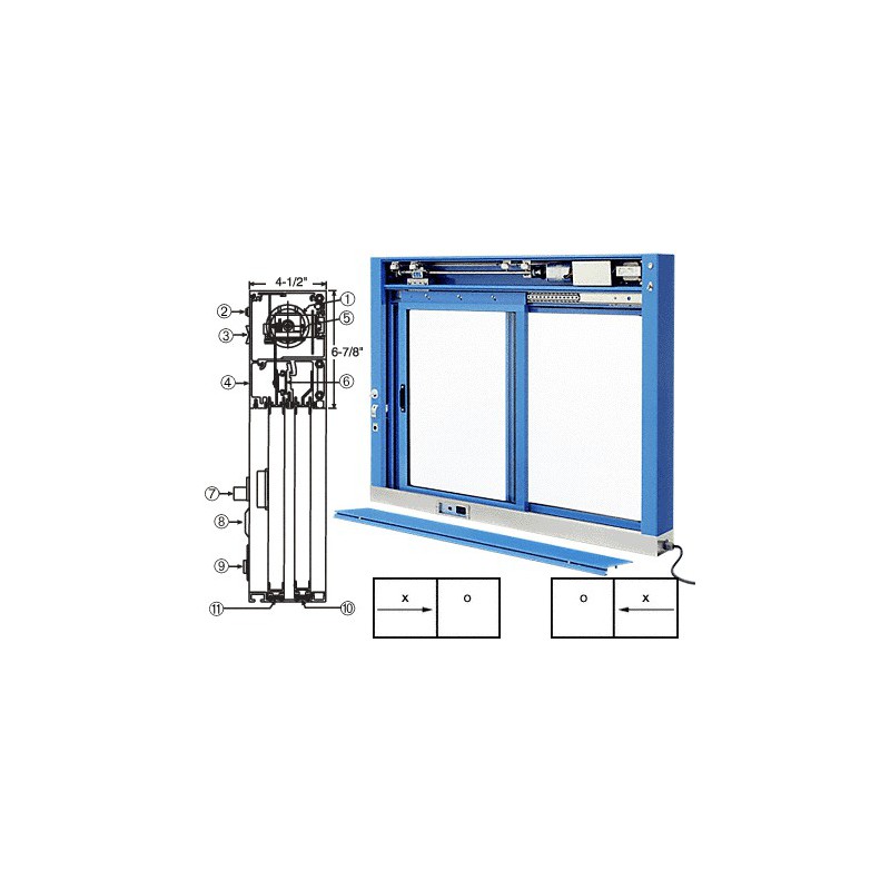 Le guichet CRL Deluxe sur mesure, à coulissement entièrement automatisé et électrique, est un guichet transactionnel coulissant unique, parfaitement adapté pour la prestation de services à l'auto tels que la restauration rapide, les pharmacies, les banques ou tout autre commerce nécessitant un guichet transactionnel automatisé de qualité supérieure. Chaque guichet sur mesure est usiné en fonction de votre ouverture. Toutes les fenêtres sont livrées entièrement assemblées et prêtes à l'emploi. Caractéristiques standard (se reporter à l'illustration de gauche ci-dessus) 1. Moteur électrique 24 Vcc 2. Fusible principal à réenclenchement par bouton-poussoir 3. Interrupteur principal Marche/Arrêt 4. Panneau d'accès amovible 5. Module électronique de commande à microprocesseur 6. Profilé à roulement à billes robuste anti-effraction 7. Serrure à pêne à crochet avec bouton tournant 8. Indicateur Ouvert/Fermé 9. Interrupteur à bouton poussoir manuel Ouvert/Fermé 10. Rail en vinyle (pas de friction métal-métal) 11. Joint d'étanchéité en velours polypropylène avec raidisseur Caractéristiques de sécurité :