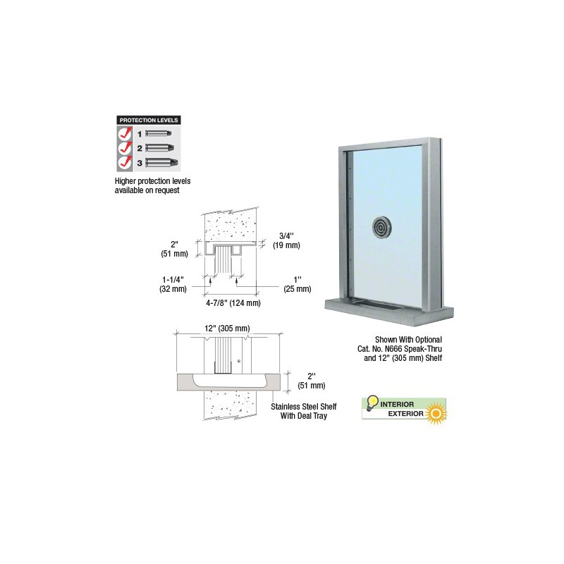 CRL Guichet transactionnel extérieur vitré avec cadre, tablette de 305 mm (12 po) et plateau passe-monnaie, acier inoxydable brossé