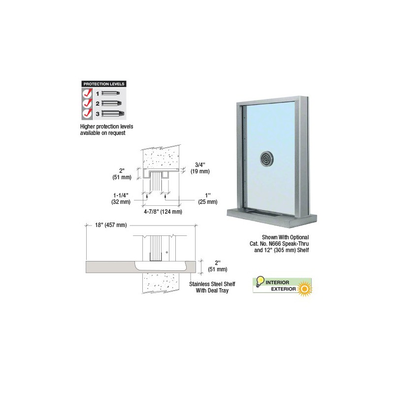 CRL Guichet transactionnel extérieur vitré avec cadre, tablette de 457 mm (18 po) et plateau passe-monnaie, acier inoxydable brossé