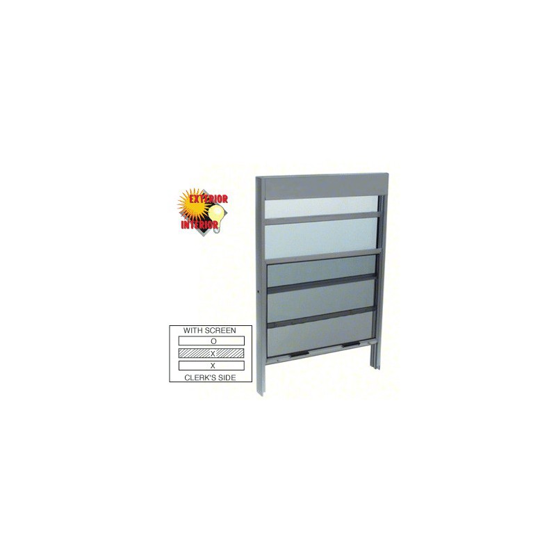 SWB1200A CRL Guichet transactionnel coulissement vertical avec dispositif de suspension de cadre, avec cran de protection, vinyle de 6,3 mm (1/4 po) d'paisseur, anodis satin