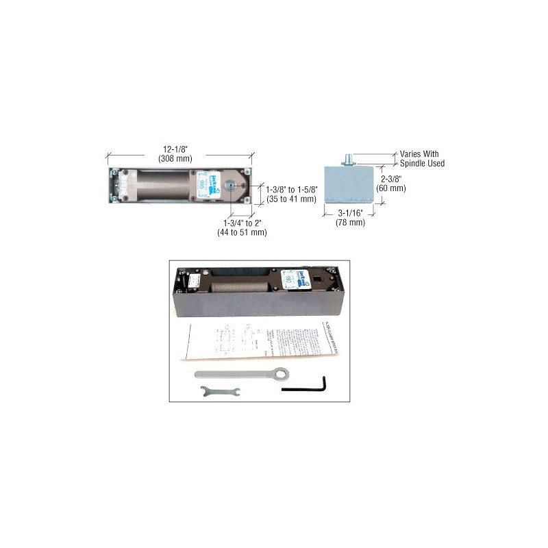 The CRL Jackson 900 Series Multi-Sized Floor Mounted Door Closer is a heavy-duty, fully adjustable closer designed for new and retrofit applications. Accessories are available for either double or single acting doors. With its 1,000 lbs. (453 kg) capacity, the 900 Series Door Closer can be used with larger and heavier interior or exterior doors for longer, maintenance-free performance. These Door Closers are available in dual 90º and 120º, or 105º only Hold Open and No Hold Open models.