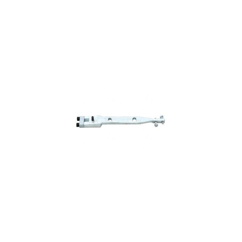 CRL Jackson 'K' Type End-Load Top Arms have no lateral adjustment. The two bolts in the end of the Arm adjust the centering of the door. Used in 5/8" (16 mm) depth top rails with an opening at the end of the rail.