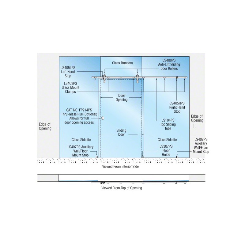 Le kit de fixation sur verre de portes coulissantes simples de la série Laguna de CRL contient tous les composants dont vous avez besoin (à l'exception du verre trempé) pour finaliser ce type d'installation. Ce modèle est utilisé pour des applications dont la porte coulissante simple est fixée sur une ouverture « tout en verre » dotée d'un mur sur un côté de la porte, d'une imposte en verre au-dessus de la porte et d'un panneau fixe en verre sur l'autre côté de la porte Les portes à deux vantaux ne sont pas adaptées à cette application. Les roulements supérieurs pour porte coulissante anti-effraction peuvent être fixés au verre soit en applique soit en affleurement (les deux types de fixations sont possibles). Les roulements sont dotés d'un dispositif d'ajustement vertical +/- 3,2 mm (1/8 po) pour faciliter l'alignement des portes. Ce système ne doit être utilisé qu'avec du verre trempé de 10 ou 12 mm (3/8 ou 1/2 po) uniquement. Le verre feuilleté n'est pas compatible. LIMITES DU SYSTÈME DE PORTE Poids de porte maximum : 100 kg (100 kg) Largeur de panneau maximum : 1,36 m (53-1/2 po) Hauteur de panneau maximum : 2,50 m (98-7/16 po) Longueur de rail maximum : 2,64 m (104 po)