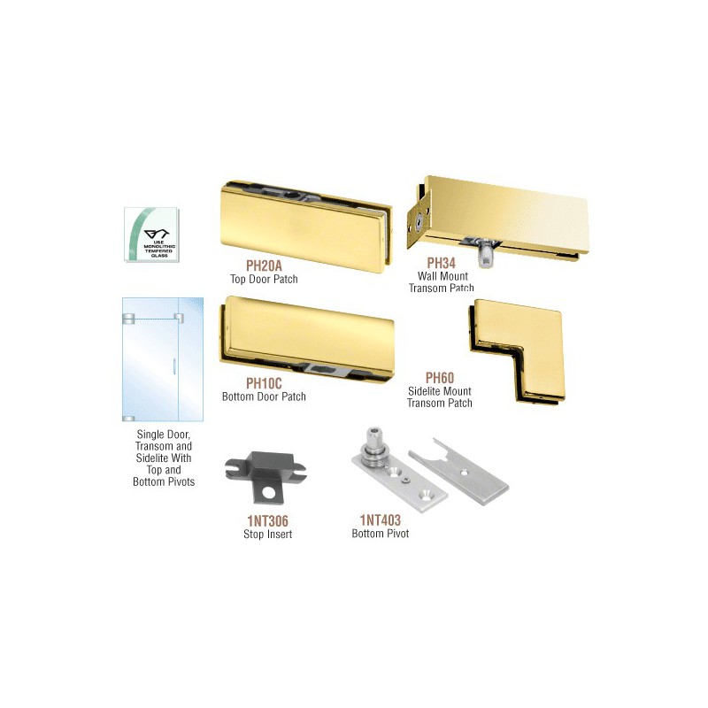 PHA4BR CRL Polished Brass North American Patch Door Kit for Use With Fixed Transom and One Sidelite - Without Lock