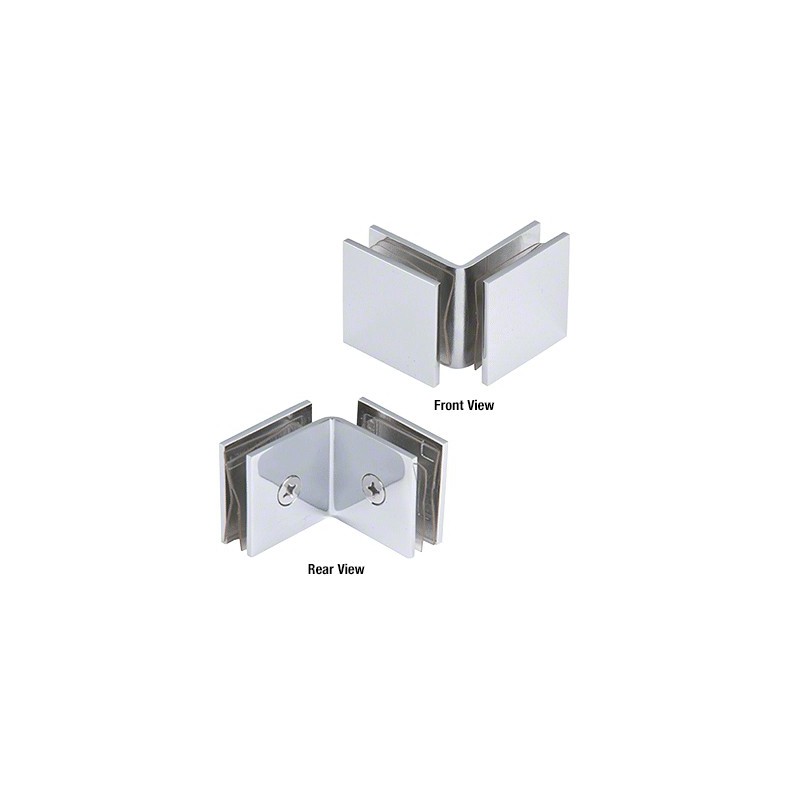 These CRL 90 Degree Open Face Clamps are intended to clamp glass panels meeting at a 90 degree angle. The "open face" design of the clamp provides a more open appearance, thus creating the desired aesthetics of the modern frameless shower enclosure. These clamps are for 3/8" to 1/2" (10 to 12 mm) thick tempered glass, and are stocked in six popular finishes.