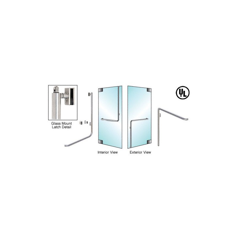 PA100C3GKBS CRL Poigne de porte extrieure, modle C, antipanique, inverse, accs par cl, verrouillage en haut, fixation sur porte battante en verre, ct droit, acier inoxydable bross