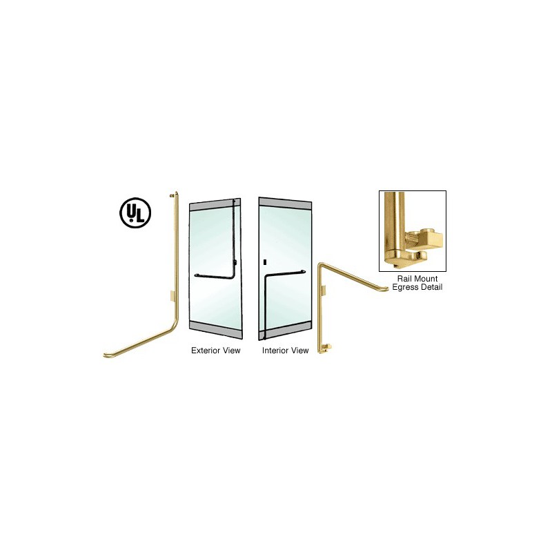 Les poignées de commande de sortie électronique CRL sont une solution plus économique pour contrôler l'entrée et la sortie des zones nécessitant des restrictions de sécurité, tout en conservant l'aspect esthétique et le style d'une porte tout-verre. Lorsque la poignée est enfoncée, l'interrupteur électronique déverrouille la fermeture magnétique située dans la partie supérieure ou inférieure de la porte. Pour votre confort, nous avons conçu des poignées prêtes à l'installation sur portes de 0,91 à 1,22 m (36 à 48 po) de large et de 2,29 à 2,59 m (90 à 102 po) de haut sans devoir y apporter la moindre modification. Les installations peuvent être réalisée sur des portes simples et à deux battants. Veuillez consulter les normes de construction de votre pays relatives à la quincaillerie de verrouillage électromagnétique ainsi que leurs conditions d'application. Les poignées de commande de sortie électronique standard sont fabriquées de telle manière que la barre horizontale soit centrée à 1,07 m (42 po) de la partie inférieure d'une porte de 2,44 m (96 po). Lorsque vous utilisez des poignées standard sur des portes plus basses ou plus hautes, la position horizontale est modifiée en conséquence, mais ne doit pas être supérieure à 1,22 m (48 po) ou inférieure à 914 mm (36 po) du sol, conformément aux normes de construction américaines relatives à l'installation de quincaillerie. Pour des exigences supplémentaires, veuillez consulter la réglementation locale. Brevet américain N° 7,347,461. DONNÉES TECHNIQUES Matériaux :