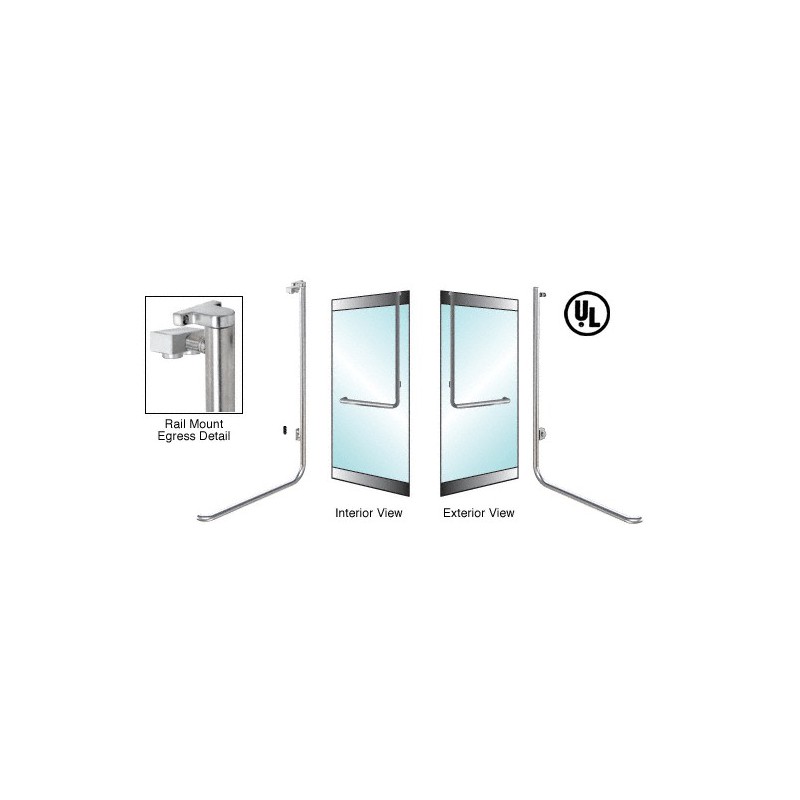 Nos poignées de commande de sortie électronique CRL représentent une solution plus économique pour contrôler les entrées et sorties dans les zones nécessitant des mesures de sécurité tout en conservant l'esthétique et le champ de vision offerts par une porte « tout verre ». Lorsque vous poussez la poignée, l'interrupteur électronique déverrouille la serrure magnétique située dans la partie supérieure ou inférieure de la porte. Pour vous faciliter la vie, nous avons conçu des poignées prêtes à installer sur des portes de 914 mm à 1,22 m (36 à 48 po) de large et de 2,29 à 2,59 m (90 à 102 po) de haut sans avoir à les modifier. Les installations peuvent être réalisées sur des portes simples et à deux vantaux. Veuillez consulter les normes de construction de votre pays relatives à la quincaillerie de verrouillage électromagnétique ainsi que les conditions d'application. Les poignées de commande standard pour barres antipanique sont fabriquées de telle sorte que la barre horizontale soit centrée à 1,07 m (42 po) de la partie inférieure d'une porte de 2,44 m (96 po). Lorsque vous utilisez des poignées standard sur des portes plus basses ou plus hautes, la position horizontale est modifiée en conséquence, mais elle ne doit pas être supérieure à 1,22 m (48 po) ou inférieure à 914 mm (36 po) du sol, conformément aux normes de construction américaines relatives à l'installation de quincaillerie. Pour connaître les exigences supplémentaires, veuillez consulter la réglementation locale. Brevet américain nº 7.347.461. DONNÉES TECHNIQUES Matériaux :