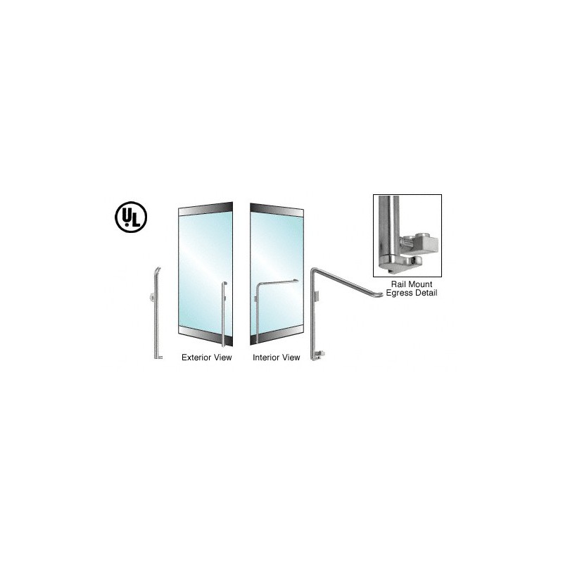 Les poignées de commande de sortie électronique CRL sont une solution plus économique pour contrôler l'entrée et la sortie des zones nécessitant des restrictions de sécurité, tout en conservant l'aspect esthétique et le style d'une porte tout-verre. Lorsque la poignée est enfoncée, l'interrupteur électronique déverrouille la fermeture magnétique située dans la partie supérieure ou inférieure de la porte. Pour votre confort, nous avons conçu des poignées prêtes à l'installation sur portes de 0,91 à 1,22 m (36 à 48 po) de large et de 2,29 à 2,59 m (90 à 102 po) de haut sans devoir y apporter la moindre modification. Les installations peuvent être réalisée sur des portes simples et à deux battants. Veuillez consulter les normes de construction de votre pays relatives à la quincaillerie de verrouillage électromagnétique ainsi que leurs conditions d'application. Les poignées de commande de sortie électronique standard sont fabriquées de telle manière que la barre horizontale soit centrée à 1,07 m (42 po) de la partie inférieure d'une porte de 2,44 m (96 po). Lorsque vous utilisez des poignées standard sur des portes plus basses ou plus hautes, la position horizontale est modifiée en conséquence, mais ne doit pas être supérieure à 1,22 m (48 po) ou inférieure à 914 mm (36 po) du sol, conformément aux normes de construction américaines relatives à l'installation de quincaillerie. Pour des exigences supplémentaires, veuillez consulter la réglementation locale. Brevet américain N° 7,347,461. DONNÉES TECHNIQUES Matériaux :