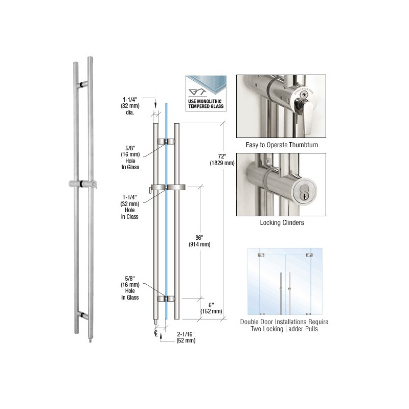LLPA72MBL CRL Poigne bton de marchal avec serrure, 2,13 m (72 po), acier inoxydable bross