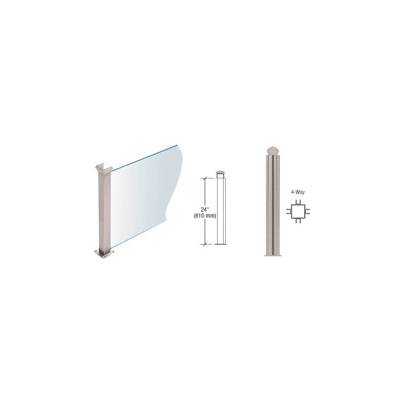 PP4424XBS CRL srie Elegant PP44, Poteau de comptoir/cloison carr de 38 mm (1-1/2 po), 4 dparts, 610 mm (24 po) de haut, acier inoxydable bross