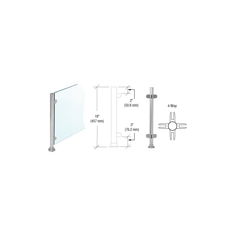 PP49XPS CRL Polished Stainless 18" x 1" PP49 Slimline Series Round Partition 4-Way Post