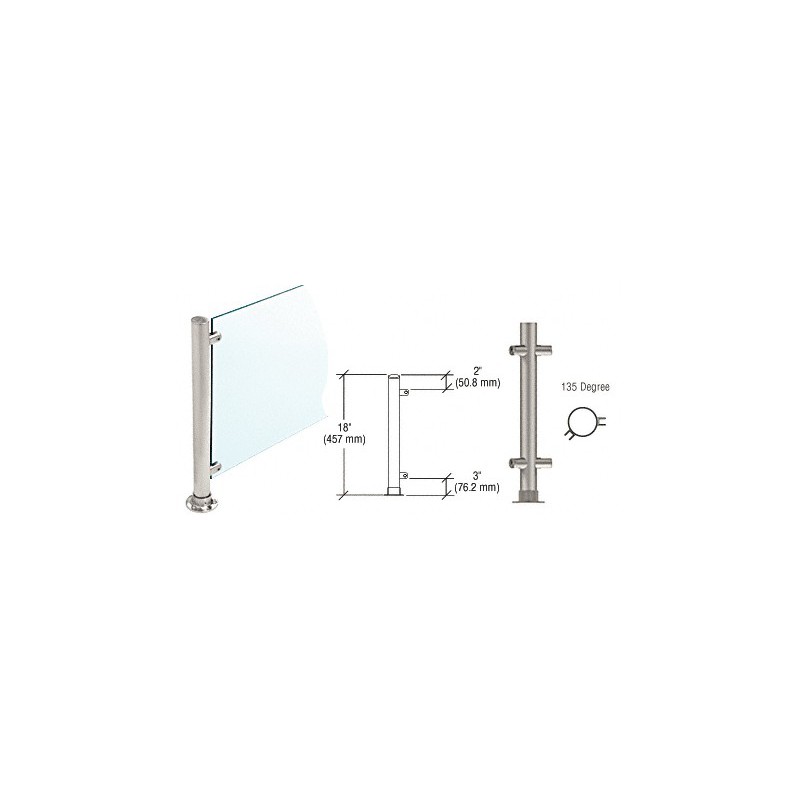 PP56ABS CRL srie Slimline PP56, Poteau avant arrondi pour comptoir/cloison, 135, 25 mm (1 po), forme droite, 457 mm (18 po) de haut, acier inoxydable bross