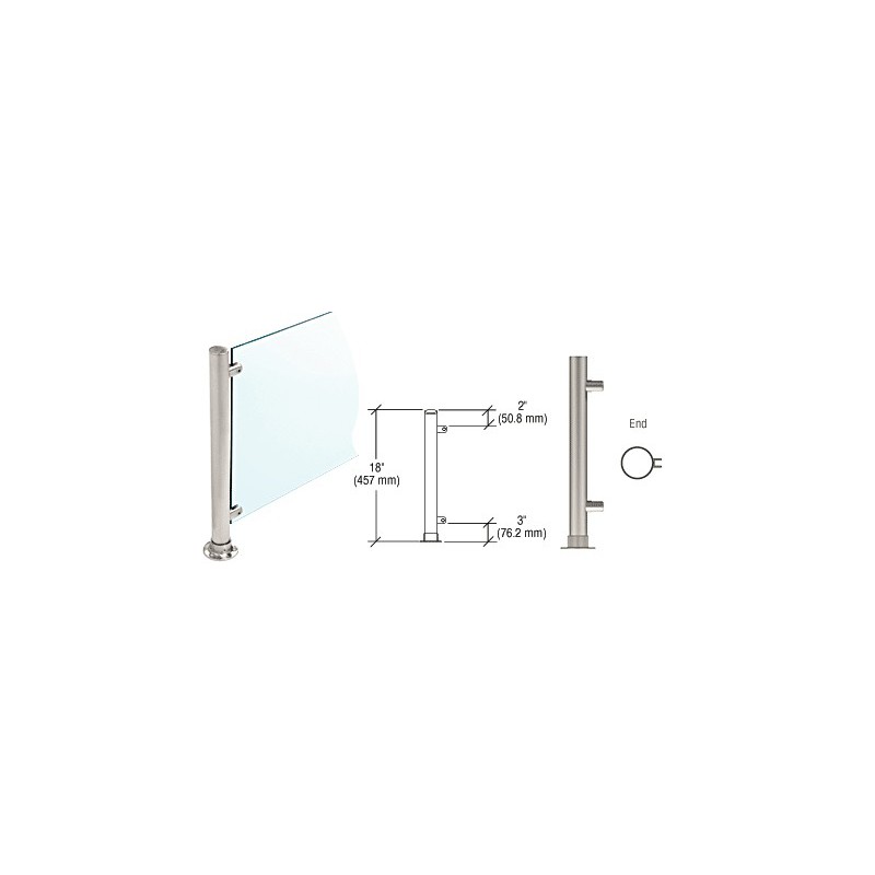 Poteaux avant arrondis, forme droite, 457 x 25 mm (18 x 1 po), avec garnitures d'entretoise à charge en bout pour verre de 6,3 ou 9,5 mm (1/4 ou 3/8 po) d'épaisseur