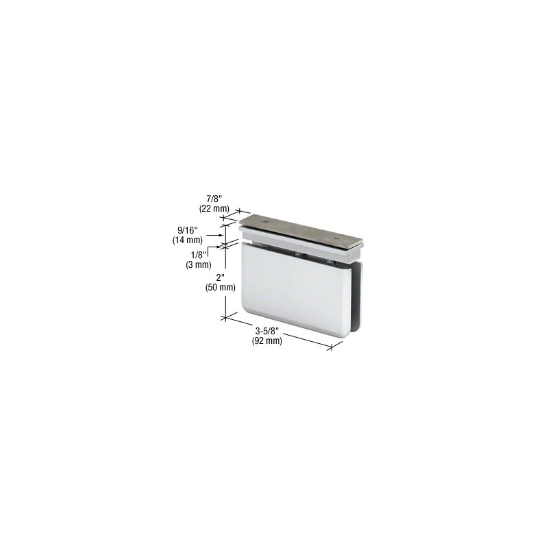 Les charnières professionnelles CRL de la série Prima sont conçues pour une épaisseur de verre trempé de sécurité de 8 à 10 mm (5/16 à 3/8 po). Fabrication en laiton massif ; toutes les pièces mobiles (axes et ressorts) sont en acier inoxydable. Les charnières Prima sont équipées d'un dispositif de centrage automatique à quatre ressorts, pour une force de retenue optimale. Avantages des charnières Prima pour installation supérieure avec système EZ-Adjust : après installation, elles peuvent être réglées horizontalement (côte à côte) dans le système de linteau EZ-Adjust, sans perçage. La grande partie du poids du verre reposant sur la charnière inférieure, vous pouvez l'installer en retrait par rapport au mur, ce qui procure de l'espace pour les porte-serviettes et patères. Kit d'axe d'articulation à 5°, en option : les kits d'axes d'articulation à 5° en option (réf. PIVPIN) sont conçus pour des installations avec décalage angulaire lorsque vous souhaitez modifier la position de fermeture de la porte de 5°. Ces axes d'articulation peuvent être insérés avant l'installation ou rétrofité après installation. Vendu par kit de deux (un pour la partie supérieure et l'autre pour la partie inférieure). Non compris dans l'achat de charnières. Si vous utilisez deux charnières avec une épaisseur de verre de 8 à 10 mm (5/16 à 3/8 po), veillez à choisir une porte de 45 kgs (100 lb) et de 787 mm (31 po) de large au maximum. Données techniques :